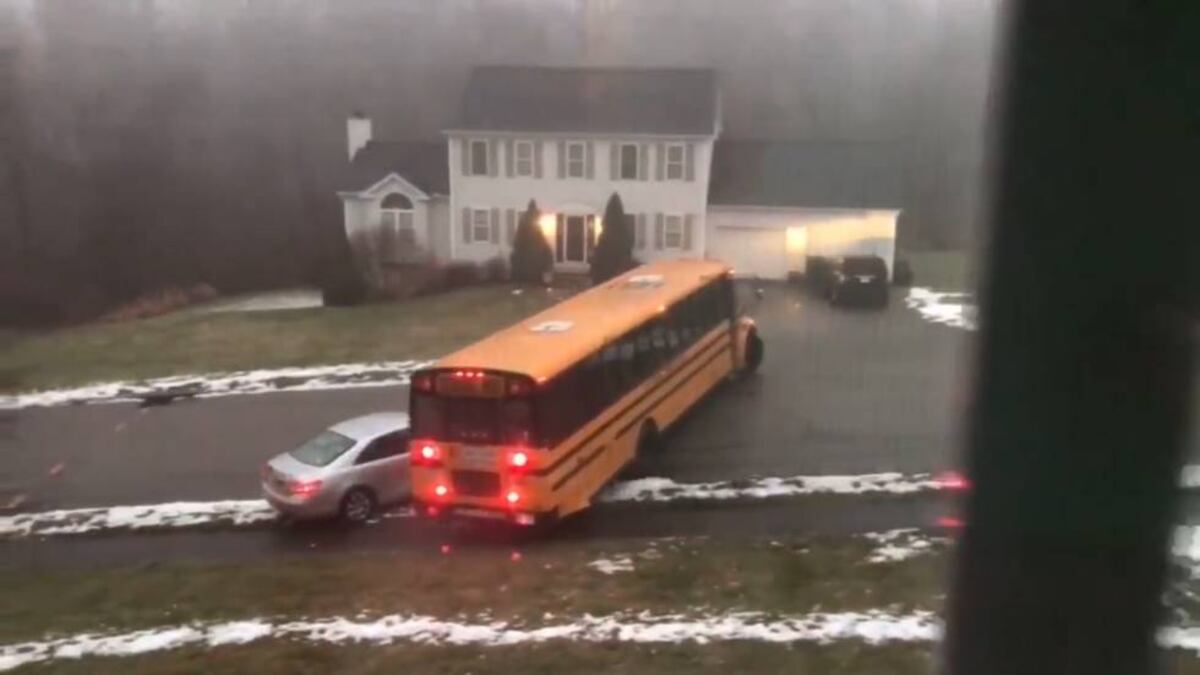 Un autobús escolar patina en el hielo Massachusetts hasta chocar con un vehículo