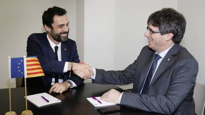Ayer, la vicepresidenta del Gobierno, Soraya Sáenz de Santamaría, intentó el recurso a la candidatura de Carles Puigdemont como presidente de la Generalitat, y aunque recibiera la negativa del Consejo de Estado y no pudo llegar al TC, muestra la decisión del Ejecutivo de impedir las jugarretas que puedan plantear desde la mesa del Parlamento de Cataluña. El nuevo presidente del legislativo catalán, Roger Torrent, lleva días escondiendo sus cartas en una partida que se jugará la próxima semana y que decidirá si el procés sigue por la vía de la ilegalidad o se reconduce hacia “las reglas básicas de la democracia”, como dijo el rey Felipe en Davos este miércoles.