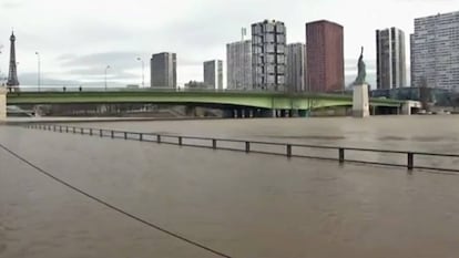 París mantiene la alerta máxima desde hace varios días debido a la inusual crecida del río Sena, del que se espera que alcance el nivel máximo de estos días durante la noche del domingo al lunes, según informa AFP, aunque no llegará a su récord histórico. Las previsiones hablan de un incremento de 5,85 metros a 5,95, lo que supone más de cuatro metros por encima de lo normal, según especificó el organismo que controla la seguridad. El agua ha llegado este domingo hasta los muslos de la célebre estatua de un guerrero zuavo en el puente del Alma, que sirve de referencia a los parisinos para medir las crecidas fluviales. Según los datos del Centro de Meteorología Nacional, el período de diciembre a enero ha sido uno de los más lluviosos en Francia desde que comenzaron a recopilarse datos en 1900. Solo en París han caído 183 milímetros por metro cuadrado desde el 1 de diciembre.