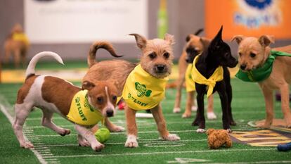 No faltan las carreras, los touchdown, la cámara que anima a los espectadores a besarse ni la esperada actuación del descanso. En la Puppy Bowl todo imita a la Super Bowl de la Liga Nacional de Fútbol Americano. Pero, como su nombre indica (puppy en inglés significa cachorro), los protagonistas de esta competición alternativa son los perros. El torneo se celebra ininterrumpidamente desde hace 14 años en la cadena estadounidense de cable Animal Planet. La edición de 2018 será, como la Super Bowl, el próximo 4 de febrero. Durante diez horas de emisión ininterrumpida, los narradores vibrarán con las jugadas de 90 crías llegadas de todo EE UU. Competirán divididas en dos equipos con una regla muy simple: cada vez que un cachorro lleva uno de sus juguetes a la zona de anotación contraria y la posa, marca un touchdown. Quizás a muchos les parezca menos emocionante que el evento planetario en que se inspira. Pero nadie puede negar que detrás hay una buena causa: todos los perros que participan provienen de albergues de animales para concienciar a los espectadores sobre la importancia de la adopción.