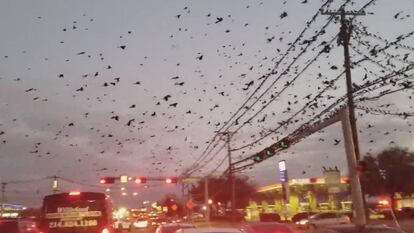A algunos les vendrá a la mente la famosa película de Hitchcock, Los Pájaros (1963), pero en realidad se trata de un evento natural. Cientos de estorninos (un pájaro muy común en el estado de Texas) han descendido al área metropolitana de Houston, Texas (EE UU). El sonido de este ejército de aves ha asustado a los transeúntes y a los conductores durante la madrugada. Han invadido las calles, posándose en los tendidos eléctricos de la ciudad, sobre los tejados y acercándose a muchos de los aparcamientos de la zona.