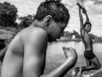 A pesar de las condiciones hostiles en las que viven, los guaraní kaiowá no se dan por vencidos. El coraje es la respuesta a la milicia armada, contratada por los estancieros, que dispara contra adultos, niñas y niños