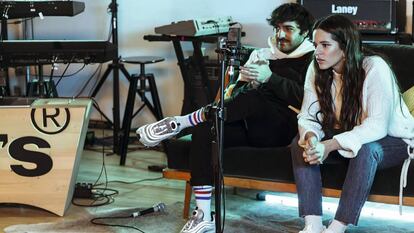 La cantante Rosalía, acompañada del productor El Guincho, imparte su segunda 'masterclass' en el marco de la iniciativa Levi's® Music Project, que proporciona formación musical a un grupo de diez jóvenes