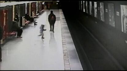 Un niño de dos años saltó a las vías del metro de una estación de Milán (Italia), tal y como recoge la grabación de las cámaras de seguridad del metro, que ha trascendido esta semana. El tren iba a entrar en la estación en ese mismo minuto, por lo que un adolescente de dieciocho años saltó para salvarle y ponerle en un lugar seguro. El pequeño está en buen estado y nadie resultó herido.