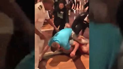 Son los momentos finales del "crucero del infierno", como lo han descrito algunos de los pasajeros que iban a bordo. Una pelea multitudinaria que acabó con 23 pasajeros expulsados del barco de la compañía estadounidense Carnival, el mayor operador del mundo. Sucedió el pasado viernes en aguas de Australia y las imágenes, grabadas por algunos pasajeros con su móvil y difundidas por la radio local 3AW Radio, recorren redes sociales y webs de todo el mundo. La naviera ha asegurado que se trata de "un incidente sin precedentes" y ha anunciado la apertura de una investigación para defenderse de quienes la acusan de un uso excesivo de la fuerza por parte de su personal de seguridad. Las 23 personas que fueron devueltas a tierra tres días después de zarpar de Melbourne pertenecen a la misma familia. Según han relatado otros viajeros a medios australianos, desde el primer día destacaron por sus comportamientos incívicos y por amenazar e incluso agredir a otros cruceristas.