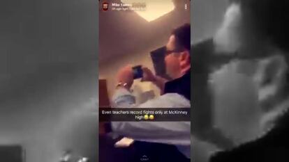 Todo podría haberse quedado en una anécdota dentro de la clase si no fuese porque otro de sus alumnos grabó y subió a Snapchat un vídeo en el que se ve al profesor disfrutando del momento. En el vídeo pone un pequeño texto que dice: "Incluso los profesores graban las peleas del colegio McKinney", señala el autor original de este vídeo, el estudiante Mike Keemo.