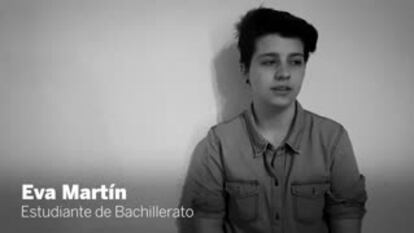 No hay medias tintas en el universo de Eva Martín Nieto, 17 años, nacida en Bilbao, algo que lleva muy a gala. Sabe lo que quiere y lo defiende, sin importarle dónde y con quién. Sus amigos y amigas son del barrio, pero también están en la red y en los grupos feministas y LGTBI. En el instituto la han llamado muchas cosas por su aspecto, pero ella se ha sacudido las críticas como si no fueran más que molestas gotas de agua. Jamás ha dudado de sí misma ni ha tenido dudas de quién es. Inteligente, segura y difícil de domesticar, pero con una risa contagiosa y toda la vida por delante, caiga quien caiga.
