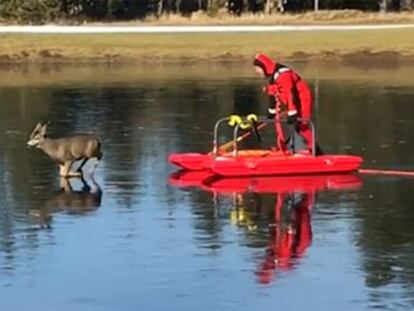 Un vecino de Michigan, en Estados Unidos, obvió los riesgos de deslizarse sobre un lago helado y protagonizó unas imágenes que podrían haber acabado en tragedia. El hombre estaba pilotando su motonieve sobre el lago Pontiac, junto a la localidad de Waterford, cuando el hielo se rompió bajo el vehículo y el hombre cayó al agua helada. La casualidad quiso que en ese momento llevara dos destornilladores que le sirvieron para poder agarrarse a la placa de hielo, por lo que consiguió salir.