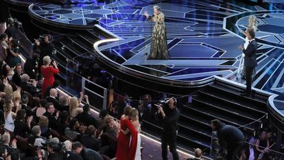Quien estaba a punto de llegar en ese momento, como un ciclón, era Frances McDormand, ganadora de la estatuilla como mejor actriz por Tres anuncios a las afueras. Ella fue quien dejó la imagen y el discurso de la milimétrica noche. "Si tuviera el honor de que todas las nominadas, en todas las categorías, se pusieran de pie conmigo. Actrices... Meryl, vamos, si tú lo haces lo hará el resto. Directoras, guionistas, diseñadoras, directoras de fotografía, productoras, compositoras, diseñadoras. ¡Vamos!, mirad alrededor, señoras y señores, porque todas tenemos historias que contar y proyectos que necesitamos que sean financiados. No nos habléis esta noche en la fiesta, invitadnos a vuestros despachos en un par de días o venid a los nuestros, lo que os venga mejor, y os hablaremos de ellos. Tengo dos palabras que dejaros esta noche: cláusula de inclusión".