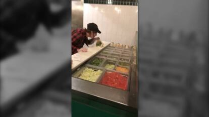 Una trabajadora del restaurante de comida rápida Pita Pit en Missoula (Estados Unidos) escupió en la comida de una de sus clientas mientras discutía con ella el pasado sábado. ShaeLynn MadPlume, amiga de la clienta afectada, grabó y subió el vídeo a su perfil de Facebook. En la grabación, a la camarera se le escucha decir que eran las 3 de la mañana y que quería irse a su casa. La publicación de ShaeLynn, donde han calificado a la trabajadora de 'racista', ya ha sido compartida por miles de usuarios. Los dueños del local se pronunciaron en Facebook pidiéndole disculpas a la clienta y asegurando que esa mujer ya no trabaja con ellos.