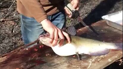 Un pescador ha encontrado una serpiente en el interior de un pez en el municipio estadounidense de Mooringsport. El hombre regresó a casa el pasado 15 de marzo tras una larga jornada de pesca en el lago Caddo, Luisiana, y comenzó a filetear los animales que había capturado cuando uno de ellos le sorprendió. Uno de los peces que estaba seccionando portaba en su interior un reptil de un metro de longitud, probablemente ingerido hacía unas horas en las aguas del lago Caddo. Mientras el varón desmenuzaba en una mesa sus capturas, una acompañante grabó toda la escena en vídeo y no pudo ocultar el asombro en su reacción.