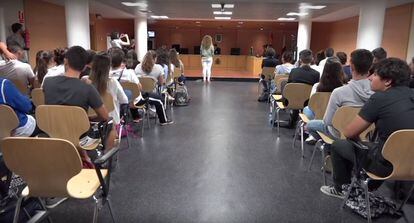 El programa educativo consta de tres fases. “Y en todas nos movemos sin presupuesto”, se apresura a decir Gloria Poyatos, presidenta de la AMJE e impulsora de la iniciativa, que es posible gracias al voluntariado de jueces, fiscales, abogados, procuradores, forenses, psicólogos y demás profesionales de la justicia. La primera fase consiste en una serie de charlas que este colectivo de voluntarios imparte en los institutos para difundir qué es la justicia igualitaria y ayudar a los jóvenes a reconocer los habituales estereotipos sexistas y los micromachismos.