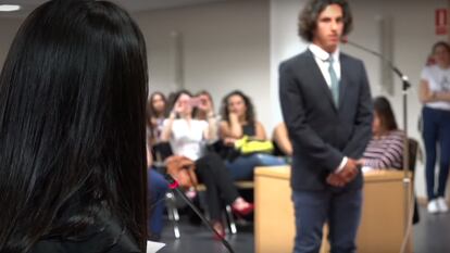 Eduardo Toledo, de 17 años, participó el curso pasado y consiguió formar parte de la última fase. Fue el magistrado del juicio que se celebró en la sede judicial de Lanzarote. Ya había decidido estudiar judicatura, dice, pero “ser seleccionado como juez para el proyecto me hizo tenerlo más claro”. Toledo asegura que el programa le ha servido para ser más consciente de los problemas que afectan a las mujeres, sobre todo en el ámbito laboral, que desconocía; y para cambiar algunas de sus costumbres, “como decir 'esto es la polla' cuando algo es bueno y 'esto es un coñazo' cuando es malo. Intento hablar mejor y evitar esas connotaciones negativas y positivas atribuidas a los órganos sexuales”, dice.