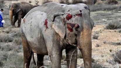 Los paquidermos se han comportado pacíficamente y numerosos curiosos se han acercado a verlos. Los animales pertenecen a un circo, cuyos domadores acudieron a la zona para mantenerlos tranquilos mientras se buscaba un nuevo medio de transporte para recogerlos y proseguir el viaje. Dos de los elefantes han sufrido "heridas importantes" y han tenido que ser rescatados por una grúa como aparece en un vídeo compartido por el director general de tráfico del Ministerio de Interior, Gregorio Serrano.