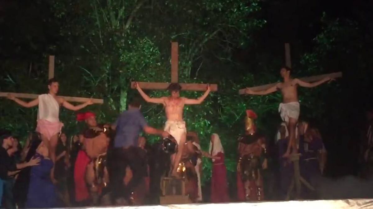 Un hombre trata de "salvar" a Jesucristo golpeando a un actor que hacía de romano