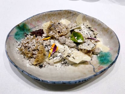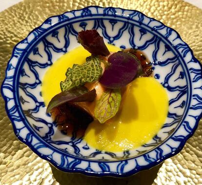 A medida que avanzaba el menú mis expectativas se iban quedando cortas. A la mesa llegaban platos diferentes, salpicados de registros ácidos, amargos, agrios, acres y moderadamente picantes, con el contrapunto de los tradicionales fermentados coreanos. A todas luces, un código de sabores distinto. En suma, un menú de alta cocina por un precio de 65 euros.