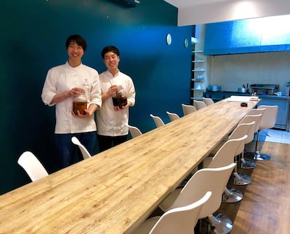 Llegué al día siguiente y me encontré con un local diáfano, desprovisto de adornos decorativos, presidido por una única mesa comunal con capacidad para 12 comensales. En un extremo el risueño Luke Jang, propietario y cocinero, junto a su ayudante, el joven Sungkyun, también coreano. Entre ambos, cada noche preparan a la vista un único menú de nueve pasos y dos postres, idéntico para toda la mesa al precio de 65 euros el cubierto. Platos indefinibles de influencia coreana aunque elaborados con productos fundamentalmente españoles. Apenas tres semanas después de su inauguración, comienzan a descubrirlo sus primeros clientes.