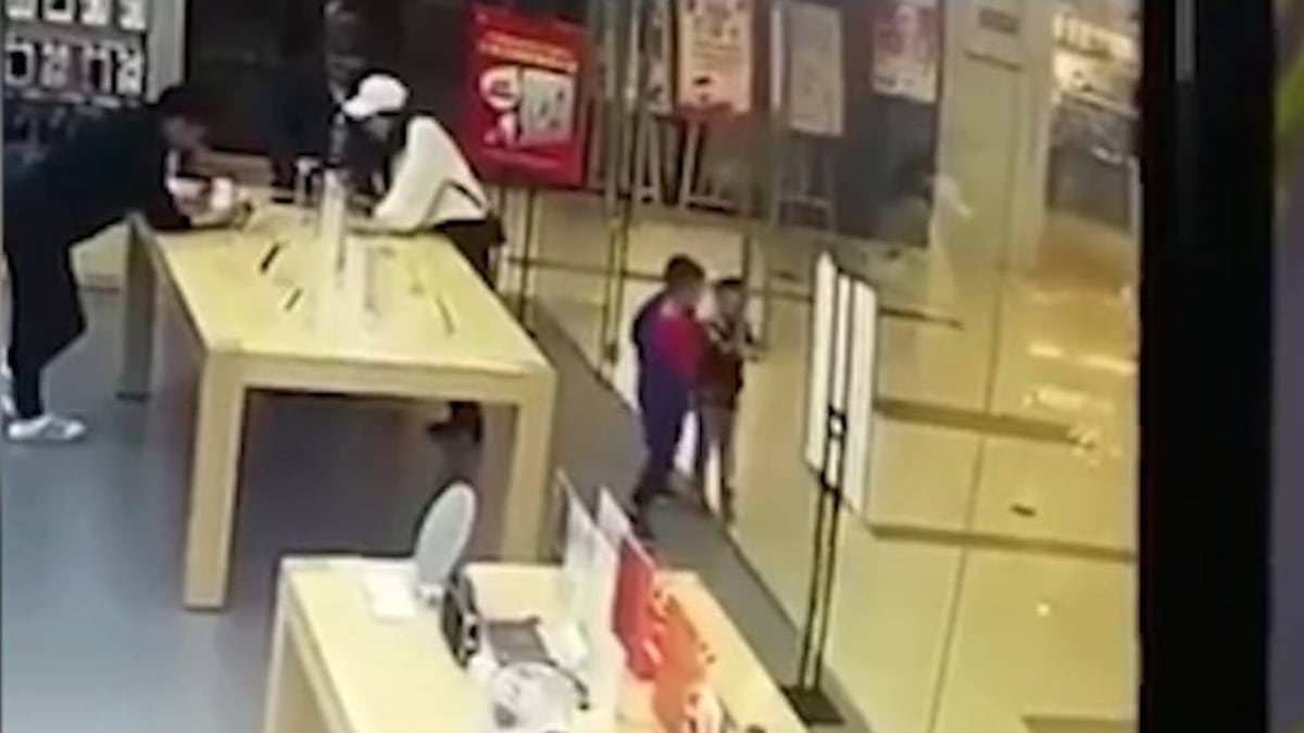 Un niño se corta la cara al romperse una puerta de cristal sobre él en una tienda de Apple en China