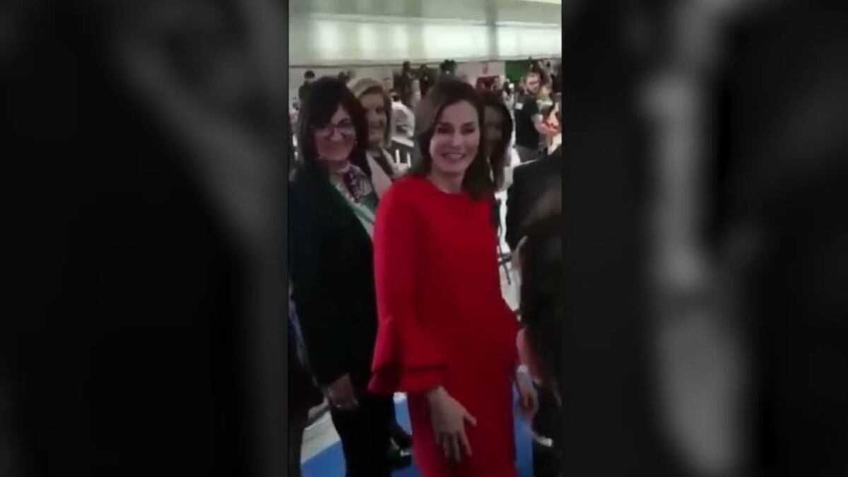 Una alumna se aventuró a hacerle una propuesta a la reina Letizia durante su visita a una de las jornadas del V Campeonato Autonómico de Formación Profesional Andalucía Skills, celebrado en el campus El Carmen de la Universidad de Huelva (UHU) este miércoles. "Doña Letizia, contrátame para bailar por bulerías", le dijo la joven a la reina. A lo que la reina contestó: "¿Y dónde te contrato?". La estudiante reaccionó entonces contándole a la reina que le gustaría bailar en el Palacio Real e incluso le ofreció dejarle su número. El vídeo alcanzó las 20.000 reproducciones en unas horas desde que se publicó en la red social Twitter. La visita de la reina al campus universitario terminó después de largos saludos a los alumnos y ciudadanos que se encontraban en la salida, con los que estuvo al menos 15 minutos haciéndose selfies.