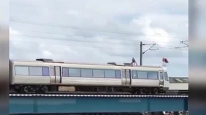 Un 'surfista de trenes' arriesga su vida con este salto