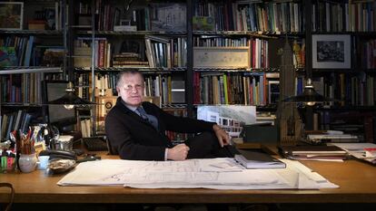 En la casa-estudio de Pascua Ortega, uno de los pioneros del interiorismo en España, huele a fuego de chimenea. La luz es tenue, los techos altos. En esta especie de palacete del barrio de las Letras de Madrid, cada objeto ha encontrado un rincón y no hay rincón desnudo. Dentro de esa densidad de objetos, de libros colocados sobre una mesa aquí y otra allá, de revistas organizadas en hatillos en las estanterías, de espejos y columnas, todo parece estudiado por alguien meticuloso que dice estar obsesionado con las luces —“en cuanto falta una me doy cuenta”, comenta mientras ordena que se repongan—. Ortega, de 72 años, avanza por salas comunicadas entre sí donde están las mesas de su equipo —unas 10 personas—, los muestrarios textiles, los de pavimentos, los de acabados, los planos. Un mundo que desemboca en su despacho, el lugar de donde han salido los 800 proyectos que calcula haber realizado a lo largo de cuatro décadas, desde casas particulares hasta las áreas de presidencia del grupo March, Barclays y Telefónica. De las embajadas españolas en Washington y Riad hasta la puesta en escena para Madrid de la boda de los reyes Felipe y Letizia.