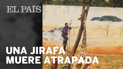 Muere una jirafa tras quedar atrapada su cabeza entre dos ramas en un zoo de China