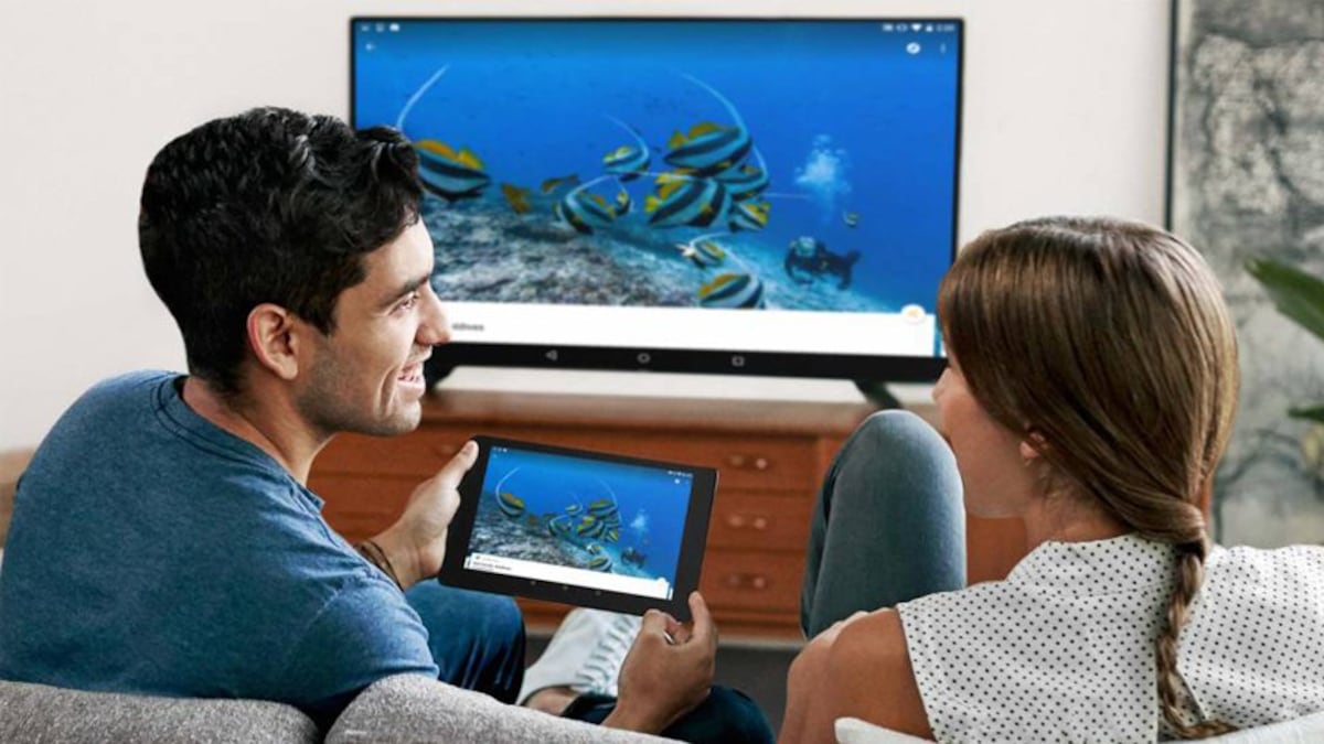 Su diseño es, probablemente, el más cómodo de la selección. Y es que, aunque también se conecta al puerto HDMI, cuenta con un sistema muy flexible que facilita la colocación a la vez que queda escondido tras la pantalla. El control se realiza desde un móvil, tableta o portátil conectados a la misma red: basta con abrir una aplicación compatible o buscar un vídeo y pulsar sobre el botón que identifica la función “enviar pantalla”. Mientras sigue la reproducción, se puede continuar utilizando el terminal de forma independiente.