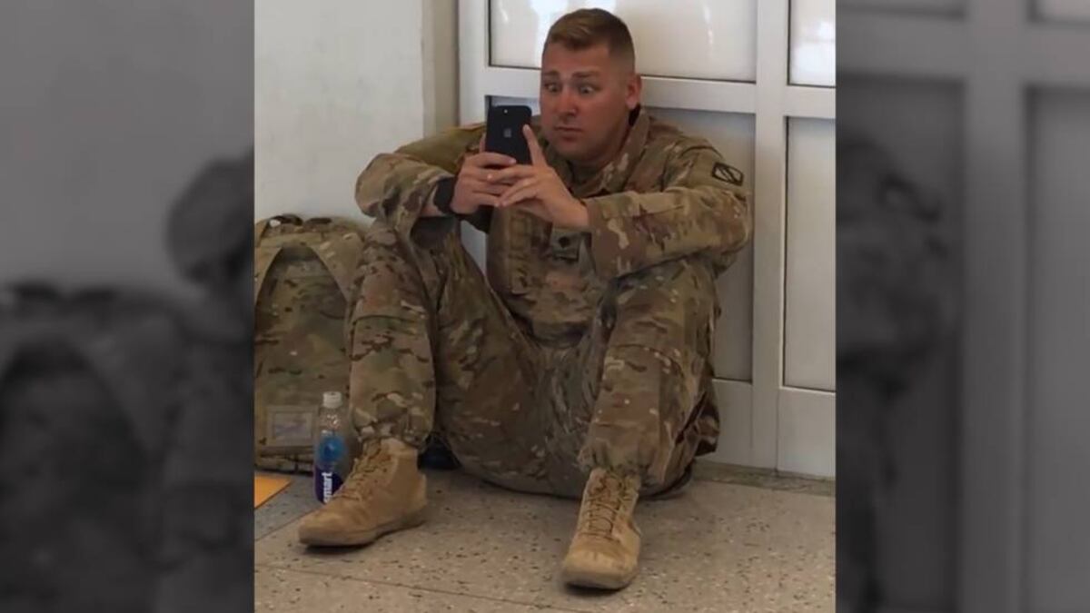 Lo intentó, pero no llegó a tiempo. El militar de las fuerzas armadas estadounidenses Brooks Lindsey recibió este sábado una llamada alertándolo de que a su esposa se le había adelantado el parto porque tenía la presión arterial alta y presentaba signos de preclampsia. El especialista intentó regresar a tiempo a su casa tras el entrenamiento previo a su despliegue en Kuwait, pero no lo consiguió. Lidsey cogió un vuelo de emergencia de El Paso a Dallas, en Estados Unidos, pero en la conexión el vuelo se retrasó y tuvo que ver cómo su mujer daba a luz por una videollamada en el propio aeropuerto. Las lágrimas del militar conmovieron al resto de viajeros, que le sacaron fotografías y grabaron varios vídeos. Las imágenes se han vuelto virales en redes sociales con miles de compartidos y 'Me gusta'.