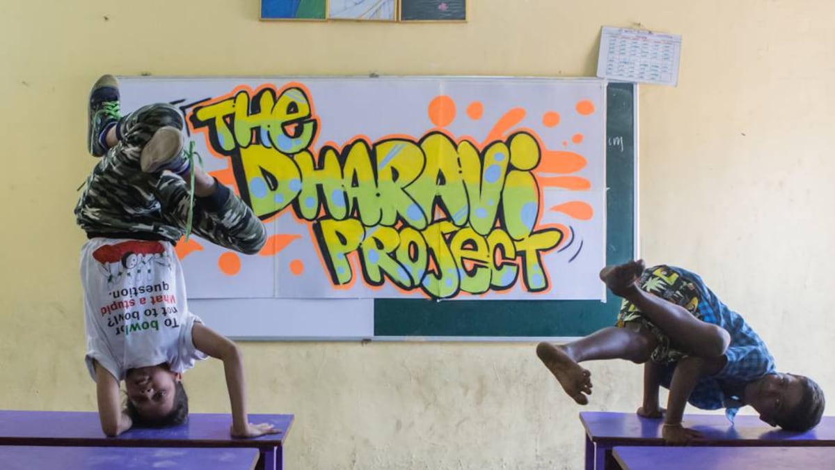 Fuente de inspiración de la aclamada película Slumdog Millionaire, Dharavi vive la rápida expansión del arte callejero en la capital del entretenimiento de India. El breakdance, el grafiti, el rap y los discjockey han calado en esta barriada, de la que han salido una decena de grupos. Entre ellos está SlumGods, uno de las que levantó la escuela de hip hop Dharavi Project. gestiona un proyecto destinado a la difusión del movimiento para educar a los jóvenes del gueto. "La escuela es un medio para que los chicos se expresen. Desarrolla su creatividad y les ofrece motivación y oportunidades", explica Akash Dhangar (Akku), de 28 años y uno de los miembros de la formación musical.