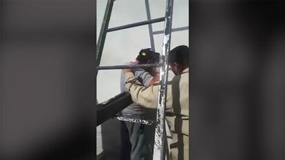 El divertido error de unos albañiles: atrapan una escalera al soldar una cañería