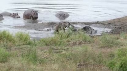 Un grupo de hipopótamos ha logrado salvar a un ñu —un tipo de antílope de África— a punto de ser devorado por varios cocodrilos. En un vídeo, grabado según RT por Mervyn Van Wyk y su esposa Tokkie, una pareja de jubilados, se observa cómo los organizados mamíferos logran escoltar al animal hasta fuera del agua. La grabación, realizada mientras la pareja estaba de safari en el noreste de Sudáfrica, fue publicada este martes en YouTube y ya tiene casi un millón de visualizaciones.