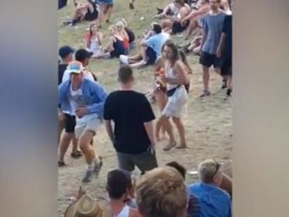 Un hombre derriba de un puñetazo a otro que estaba agrediendo a su pareja