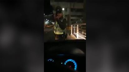 La escena tuvo lugar en un control de rutina en el aeropuerto internacional de Santiago. En el coche viajaban dos pasajeros que se bajaron cuando dieron la orden de detenerlo. Tras comprobar que se trataba de un vehículo de Uber, el agente notificó al conductor que lo retiraría de la circulación, a lo que este se habría negado. A partir de ahí comienza la grabación que termina con los disparos. El joven, de 21 años, recibió dos tiros en un brazo y un hombro, y tuvo que ser ingresado en un hospital de la capital chilena. Se encuentra detenido, acusado de un delito de homicidio frustrado a carabinero en servicio. Las autoridades chilenas han defendido la actuación del agente, que resultó herido en una pierna.