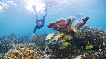 Karen Waight, dueña desde hace 17 años de la tienda de buceo Ambergris Divers insiste en que son los guías de turistas los que pueden promover el cuidado de los arrecifes entre los visitantes. “Los turistas son los niños de la industria, nosotros les enseñamos porque conocemos el lugar y el ecosistema”, refiere. Unos pasos más adelante, al interior del restaurante Elvis Kitchen, la chef Jennie Staines advierte de que la salida de la barrera arrecifal de la lista de patrimonios en peligro de la Unesco es un logro, pero también puede significar un problema en los siguientes años. “Tal vez la gente puede olvidar que tenemos que ser cuidadosos con esta belleza natural, salir de esta lista puede ser un riesgo futuro”, zanja esta mujer de 51 años.