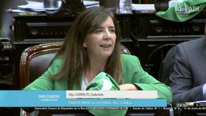 Poco después habló Gabriela Cerruti (Punta Alta, 1965), periodista, escritora y política, diputada por Unidad Ciudadana. Su discurso, como el de Donda, se coló en medios internacionales, timelines de Twitter y posts de Facebook. Durante alrededor de ocho minutos, la representante habló de lo personal para llegar a lo político, y apuntó a que la única obligación que tenían como legisladores era ser capaces de representar la conciencia colectiva de ese momento. Esa conciencia colectiva que Cerruti definió como "feminista, joven y con un pañuelo verde" estaba en la calle, gritando por un cambio. Que tardó 23 horas en llegar, pero que llegó.