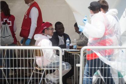 Una migrante se abraza a un miembro del buque 'Aquarius' durante su desembarco en el puerto de Valencia.ÓSCAR CORRALLlegada del buque de la Armada Italiana 'Orione'. A bordo del Orione viajaban 228 hombres y 22 menores no acompañados.Mònica TorresLos migrantes reciben ayuda a su llega al puerto de Valencia.OSCAR CORRALLa tripulación del 'Aquarius' celebran que lo migrantes rescatados en el Mediterráneo ya están en tierra.ÓSCAR CORRALPersonal de MSF aplauden a los primero migrantes que han bajado del buque 'Aquarius' en el Puerto de Valencia.ÓSCAR CORRALUn migrante muestra su camiseta en el interior del buque 'Aquarius' a su llegada al puerto de Valencia.ÓSCAR CORRALAgentes de la Guardia Civil controlan en la cubierta del 'Aquarius' el desembarco de los migrantes a su llegada a Valencia.ÓSCAR CORRALUn migrante llora de alegría tras desembarcar del buque 'Aquarius' en el puerto de Valencia.ÓSCAR CORRALAgentes de la Guardia Civil hacen gestos a una niña junto a su madre en el interior del buque 'Aquarius' a su llegada a Valencia.Óscar CorralLos migrantes del 'Aquarius' muestran su alegría tras llegar al puerto de Valencia.ÓSCAR CORRALEfectivos de la Cruz Roja aplauden la llegada del buque 'Aquarius' al puerto de Valencia.OSCAR CORRALPersonal del buque 'Aquarius' a su llegada al puerto de Valencia.ÓSCAR CORRALLos migrantes se reúnen en uno de los costados del buque 'Aquarius' a su llegada al puerto de Valencia.ÓSCAR CORRALTrabajadores del buque se preparan para amarrar al 'Aquarius' al muelle del puerto de Valencia.OSCAR CORRALPersonas del MSF explican a los migrantes como bajar del barco tras llegar al puerto de Valencia.ÓSCAR CORRALPersonal de emergencias y policías esperan a los migrantes del 'Aquarius' en el puerto de Valencia.ÓSCAR CORRALPersonal del 'Aquarius' saludan a su llegada al puerto de Valencia.OSCAR CORRALAgentes de la Guardia Civil se preparan para subir a bordo del 'Aquarius'.ÓSCAR CORRALEfectivos de la Guardia Civil y la Policía Nacional suben a bordo del buque 'Aquarius'.ÓSCAR CORRALA su llegada, se escucharon en los barcos aplausos de alegría por el fin de un agotador viaje de 1.500 kilómetros por el Mediterráneo, por momentos con mal tiempo.Mònica TorresLa operación era observada desde una distancia de 200 metros por los periodistas, sin acceso al área de desembarco ni a los migrantes, para proteger su privacidad.Mònica TorresRescatados por el "Aquarius" en la noche del 9 al 10 de junio frente a Libia, se trata en total de 450 hombres adultos y 80 mujeres -al menos siete embarazadas-, 11 niños menores de 13 años y 89 adolescentes también menores.Mònica TorresUn grupo de migrantes rescatados en el 'Aquarius' celebran la llegada al puerto de Valencia. OSCAR CORRALPersonas de MSF explican a los migrantes como deben actuar a su llegada al puerto de Valencia. OSCAR CORRALMigrantes muestran su alegría tras la llegada al puerto de Valencia.OSCAR CORRALLos 274 inmigrantes que viajan a bordo del Dattilo, uno de los tres barcos de la flota del Aquarius, comienzan a desembarcar de forma escalonada en el Puerto de Valencia.Mònica TorresDe forma escalonada, a los migrantes se les proporcionará primero atención médica y posteriormente se realizará el trámite de identificación y documentación.Mònica TorresUn barco de la Guardia Costera escolta al buque 'Aquarius' a su llegada a Valencia.OSCAR CORRALUn marinero del 'Aquarius' iza la bandera de España horas antes de llegar a Valencia.OSCAR CORRAL (EL PAÍS)Un migrante mira desde el 'Aquarius' el amanecer horas antes a su llegada al puerto de Valencia.OSCAR CORRAL