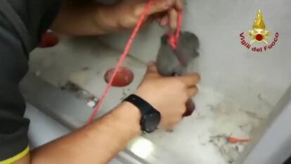Nadie sabe cómo tres cachorros de gato fueron a parar al interior de las tuberías de plástico de una vivienda de la localidad de Bussolengo, al norte de Italia. La voz de alarma la dieron unos niños que jugaban cerca del lugar cuando oyeron a los animales maullar. Fueron los padres de los menores quienes acabaron llamando al equipo de rescate de los bomberos, que logró sacarlos del interior de las tuberías, muy estrechas y de un metro y medio de profundidad, valiéndose de hilos y tubos finos. Una vez sanos y salvos, los reunieron de nuevo con su madre.