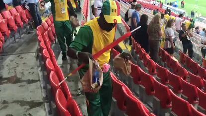 Las imágenes de algunos hinchas de la afición de Senegal en el estadio Otkrytie Arena tras lograr la victoria frente a Polonia, este martes en el Mundial de Rusia, han sido muy aplaudidas en las redes sociales. Una vez finalizado el encuentro, varios hinchas se quedaron a recoger lo que habían ensuciado en la zona de las gradas en las que habían visto el triunfo de su equipo. El equipo africano venció a Polonia por 1-2, con goles de M'Baye Niang y Thiago Cionek en propia puerta. Con este resultado, Senegal se convirtió en la primera selección de África en ganar un partido en suelo ruso en lo que va de campeonato. El vídeo acumula ya más de cuatro millones de reproducciones en Twitter, más de 11.000 retuits y 19.000 "me gusta".