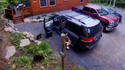 Denise Montalto Pappas ha publicado en su cuenta de Facebook un vídeo en el que una osa, acompañada de sus cachorros, abre las puertas de una camioneta y entra en ella. El vehículo estaba estacionado en el exterior de una casa situada en el municipio de Old Forge, en pleno macizo montañoso de Adirondacks, Nueva York (Estados Unidos). Las cámaras de seguridad del inmueble registraron la secuencia, y Montalto, quien afirma "no haber tenido nunca ningún problema con la vida silvestre", ha declarado que los oseznos y su madre no causaron ningún daño en el interior del automóvil: "Tan solo dejaron algunas huellas".