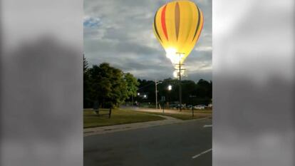 Un globo aerostático choca contra un tendido eléctrico y provoca una explosión
