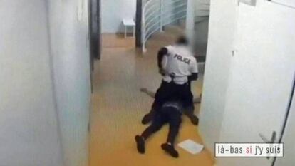 Un policía trata de introducir a un detenido en una celda y, cuando este se resiste, le golpea reiteradamente. Incluso cuando dos compañeros lo apartan del lugar, vuelve para pegar de nuevo al hombre que se encuentra tendido en el suelo. Es lo que se ve en un vídeo difundido este jueves por la página francesa La-bas.org y que ha llevado al Ministerio del Interior francés a suspender al agente involucrado en los hechos. Según la web francesa, los hechos sucedieron el pasado 9 de junio en un juzgado parisino, donde debía comparecer ante un juez el agredido. La identidad de este se desconoce y no denunció los hechos, pero siempre según la misma fuente, sería un inmigrante que durante la espera de la vista oral pidió salir de su celda para ir al baño. Fue tras el paso por los servicios cuando se produjo el incidente, pendiente todavía de una investigación a cargo de la Inspección General de la Policía Nacional francesa.