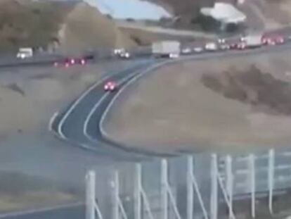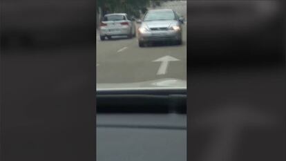 "Atento, eh, atento, que aquí vienen curvas", dice la joven cuando el coche que hay delante del que ella ocupa como pasajera se pone en marcha. El otro vehículo está a punto de incorporarse a una rotonda, pero la peculiaridad está en su orientación: va circulando marcha atrás. "Estoy flipando en colores", continúa la mujer, sin dar crédito a lo que ve y animando a su compañero, que va al volante, a seguir al vehículo para poder grabarle.