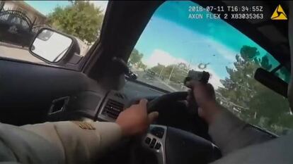 La secuencia fue captada por la cámara que llevaba un agente de la policía de Las vegas (Estados Unidos) en su chaleco. En ellas se puede ver cómo el policía dispara una y otra vez contra una camioneta que previamente había abierto fuego contra él y en la que huían dos sospechosos de asesinato. La persecución se saldó con un muerto y un herido de gravedad.