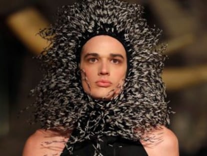 Empezó a diseñar complementos cuando era adolescente. Los vendía en el patio del instituto. Cada vez más amigas le hacían encargos. De las bandanas, pendientes y pulseras pasó a los tocados. “Me adentré en el rollo boda y comencé a ganar un dinerito”, explica el valenciano Betto García. En ese momento decidió irse a Londres para aprender el idioma y el oficio: “Mi inglés era nulo y realmente no sabía coser”. Comenzó lavando platos en un local de comida rápida. Un día conoció a una española que le facilitó unas prácticas en una sombrerería. “Era amiga de la encargada de Edwina Ibbotson, una de las más reconocidas”. Con ella, que hacía piezas para la familia real británica, lo aprendió todo. “El primer día en el taller estuve nueve horas cosiendo con sudor y lágrimas una cosa que ahora tardaría como mucho una hora”. Al principio no cobraba. “Daba igual. Era un máster impagable”. Llevaba una doble vida: “Por las mañanas estaba rodeado de plumas y por las noches olía a fritanga. Un contraste brutal”.