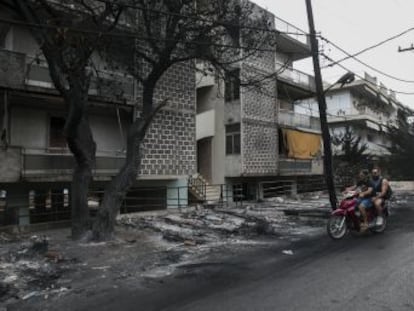A Konstantinos Gkikas, un vecino de la localidad griega de Neos Voutzas, se le cerró la puerta de su casa cuando salió un momento para forzar a sus gatos a entrar. No llevaba encima las llaves, pero sí el móvil, con el que grabó cómo todo se teñía de rojo a medida que las llamas rodeaban su vivienda. Al final pudo sobrevivir gracias a un empleado de la finca, que le abrió desde dentro. También sobrevivieron la mayoría de las personas que lograron llegar al mar en Mati, desde donde Elia Kalla grabó cómo decenas de ellas mientras contemplaban desde el agua cómo ardía la costa. Son dos impactantes escenas registradas por supervivientes de los graves incendios sufridos en la costa griega la semana pasada y que dejaron más de 90 muertos.