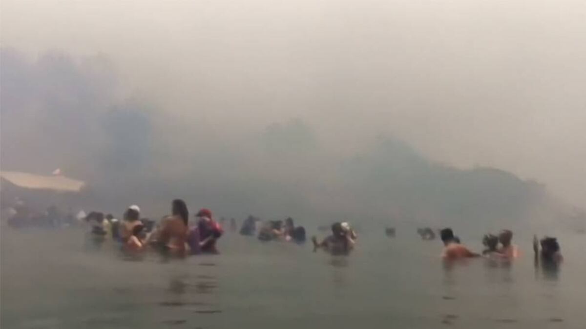 Un hombre grabó con el móvil cómo el fuego rodeaba su casa, mientras otro muestra a decenas de personas refugiándose dentro del mar