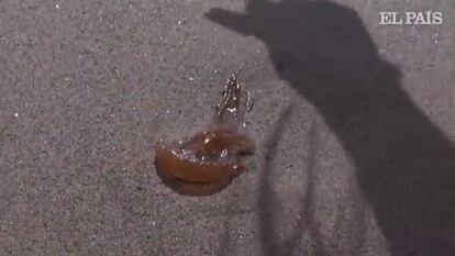 Una gran plaga de medusas invade la costa malagueña. Gran parte de su litoral se ha visto afectado este jueves por su presencia, que ha obligado a sacar la banderas amarillas, e incluso rojas, en numerosas playas de la provincia. El banco procede de la mitad oriental, donde el riesgo era medio, pero el viento las ha arrastrado también hacia los municipios más occidentales. Manilva es uno de los municipios con mayor concentración de estos animales y ha cerrado tres playas, mientras Estepona y Marbella alertaban a los bañistas de su posible presencia. Aunque se trata de una especie cuyo hábitat natural es el mar abierto, el viento de Levante y las corrientes las han acercado a la orilla. Los expertos confían en que un cambio en la dirección del viento en los próximos días ayude a alejarlas.