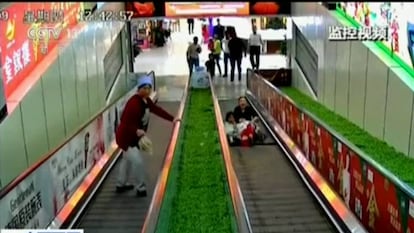 Dos jóvenes chinas quedan atrapadas bajo los tramos de una escalera mecánica