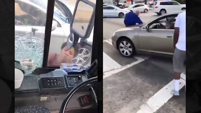 Una mujer destroza el cristal de un autobús y atropella a su conductor tras reprenderla por una maniobra