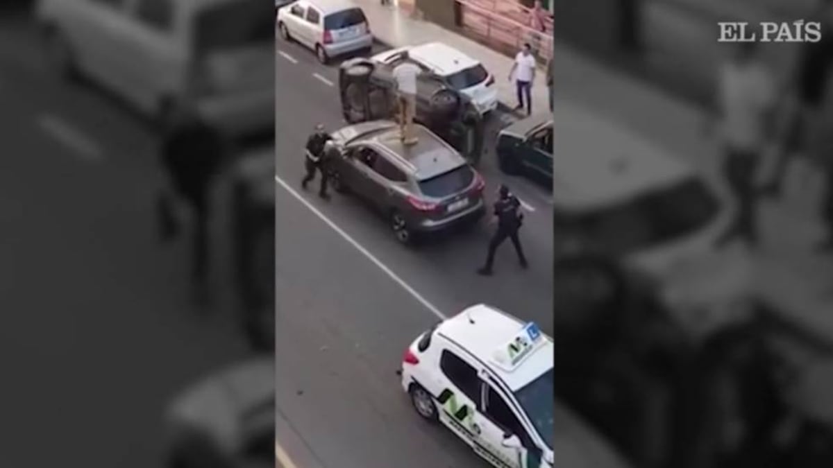 Uno de los jóvenes intentó huir de los agente saltando sobre otros vehículos